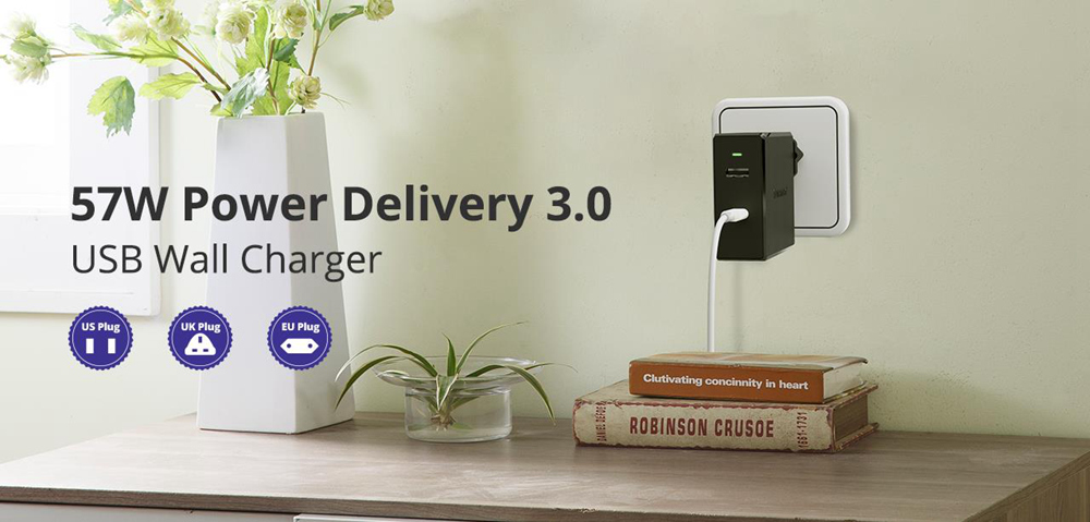 Tronsmart WCP02 60W USB-C Wall Charger with Power Delivery 3.0 for MacBook Air iPad Pro 2018 iPhone XS Max XR – UK Plug